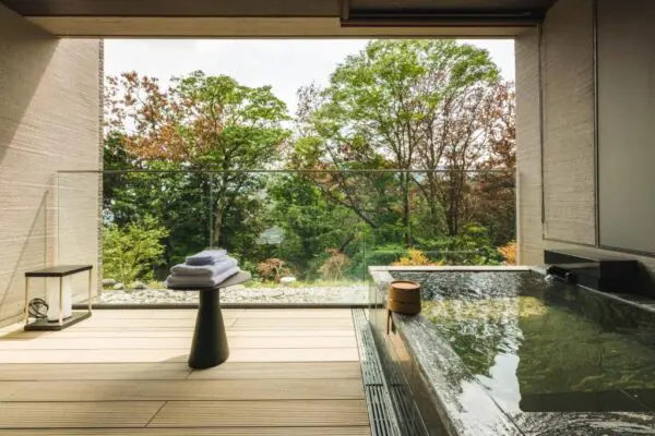 - Gora Kansuiro Ryokan: een klassieke ryokan met houten details, tatami-kamers en warmwaterbaden met uitzicht op alleen maar rust.
