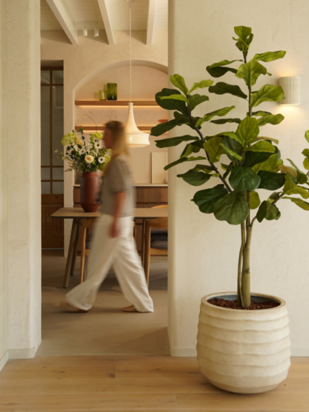 De kunstplant Ficus Lyrata (180 cm) is ideaal als grote kamerplant: niet van echt te onderscheiden dankzij de diepgroene bladeren. Helemaal kloppen doet dat niet - want deze Ficus Lyrata heeft géén aandacht nodig. Geen gedoe met water geven, zonlicht of andere zorgen, maar wél een plant waarmee je eindeloos kunt mixen & matchen in je interieur. Wel de lusten, niet de lasten.