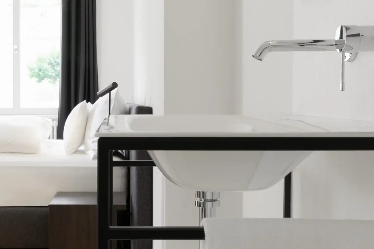 Eenvoud met smaak. Geen overdaad, maar rustige, mooie natuurlijke materialen. Het huis straalt rust, eenvoud en warmte uit. Materialen zoals ruw staal, larikshout en natuursteen blazen het gebouw nieuw leven in. Geen uitgesproken kleuren, de materialen zíjn het kleurenpalet. De rustige, maar comfortabele slaapkamers met lekkere bedden, en simplistisch sanitair, passen helemaal in het kader van ontprikkelen en gerust wakker worden. Hierdoor wordt de schoonheid van de Italiaanse bergtoppen – overal om je heen – extra benadrukt.