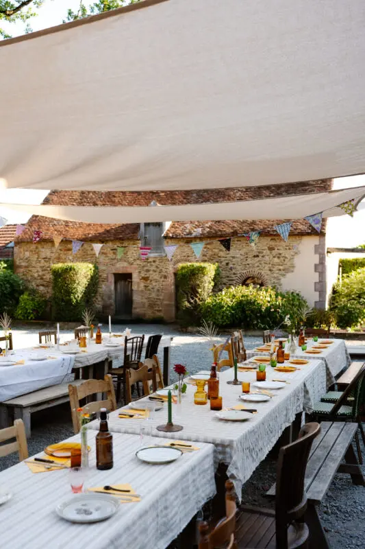 Bonneblond is niet zomaar een plek om te overnachten. Het is een heerlijk logeeradres, gelegen in een oase van rust en omgeven door een schilderachtig landschap. Overal op het terrein vind je sfeervolle hoekjes: schaduwrijke plekjes onder de bomen, houten vlonders bij het zwemmeer en een heerlijke binnenplaats. Juist die knusse plekjes waar je samenkomt (of gewoon even alleen geniet) maken het extra bijzonder. Het natuurlijke zwemmeer en het zwembad bieden de ideale verkoeling op warme dagen, terwijl de binnenplaats met lange tafels uitnodigt om tot in de late uurtjes gezellig te tafelen en verhalen te delen.