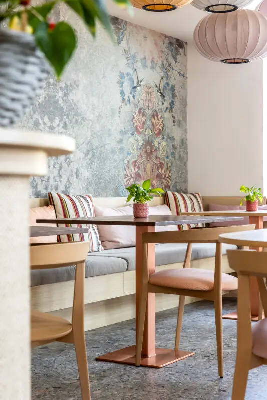 Dit boetiekhotel is picture perfect. Zachte pastelkleuren, botanische prints en rijke materialen vormen samen een eclectisch interieur waarbij je wilt ontspannen. Er zijn sfeervolle lampionnen en lichte eikenhouten tafels in de coffee & health bar. Voor ontbijt, een gezonde snack of een koffie-break kun je terecht in de coffee & health bar, met lokale koffie, matcha, smoothies en açai bowls. Again, te mooi voor het oog.