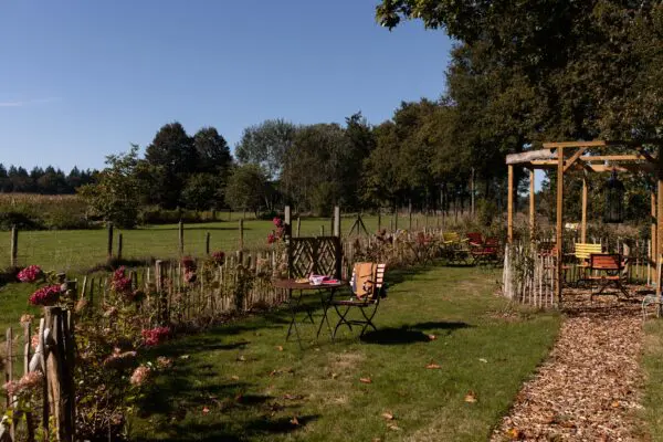 Van buiten naar binnen. Hotel De Loenermark heeft een fijne tuin waar je als hotelgast het hele jaar door kunt genieten van een kop koffie, een goed boek, of een van de (kids proof) buitenspellen.