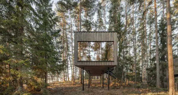 Zijn het boomhutten? Kisten op pootjes? Is het een hotel? Het is een combinatie van dit alles in the best way possible. Middenin een haast ongerept stukje van het intrigerende Smålandse bos in Zweden staat het Trakt Forest Hotel. Hoewel de term hotel anders doet vermoeden is het veel meer een soort van luxe houten cabin met modern design, terwijl het ondertussen ook ontzettend z’n foresty vibe behoudt. De vijf luxe forest suites die samen het ‘hotel’ vormen staan namelijk los van elkaar, op stalen poten een stukje hoger (hoogtevrees proof) en zijn met elkaar verbonden door een soort loopbrug. Op je buren na zul je hier nauwelijks mensen tegenkomen. Als je ergens tot rust kunt komen is het hier wel.