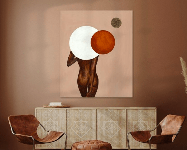 Enfin, nog even over haar werk. Annet gebruikt losse penseelstreken die elegante vormen en een fijne flow creëren. Ook het gebruik van bladgoud schuwt ze niet, dit geeft het kunstige geheel allure en een luxe randje. Très chique dus. Aardse kleuren, structuur en reliëf houden haar kunstwerken met beide benen op de grond. Juist; het blijft kunst en verre van kitsch. Emotie is haar grote inspiratiebron. Het gaat vooral om het vangen van een bepaald gevoel. En als je ‘t ons vraagt lukt dit in ieder werk. Intuïtief werken doet Annet dan ook het liefst, en zo ontstaan de allermooiste dingen. Dit daagt haar uit te werken met zoveel mogelijk verschillende kleuren, stijlen en materialen. Al verschillen deze per werk, bottom line is dat ieder kunstwerk een vorm van kracht uitstraalt. Geen tuttig gedoe, maar kunst met ballen. Houden wij van, wij zijn fan!