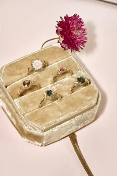 Romantisch en robuust, dat is de schitterende collectie trouwringen van Nadine Kieft Jewelry. De ontwerpen zijn dromerig, maar toch down to earth. Organische vormen gaan samen met de mooiste edelstenen en diamanten. Alle sieraden worden op de persoon afgestemd, je kunt hier zelf je edelsteen, ring, structuur en afwerking kiezen. Mixen en matchen altijd mogelijk. Oh, en dit alles komt ook nog eens met ‘n bak aan ervaring, want Nadine Kieft Jewelry bestaat 20 jaar in 2024.