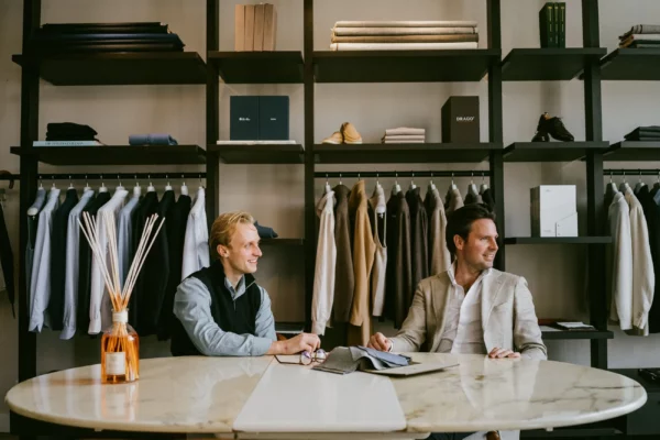 De oprichters, Robbie en Tim, hebben Nassau Tailors opgericht met één duidelijk doel: een maatpak moet je niet in een ‘harnas’ stoppen. Het moet ruimte bieden, je vrijheid geven en het allerbelangrijkste ervoor zorgen dat jij je er op je gemak in voelt. Want het draait niet om wat je draagt, maar hoe jij het draagt. Of je nu een belangrijke vergadering hebt of een speciale gelegenheid, je wilt altijd het gevoel hebben dat je op je best bent.