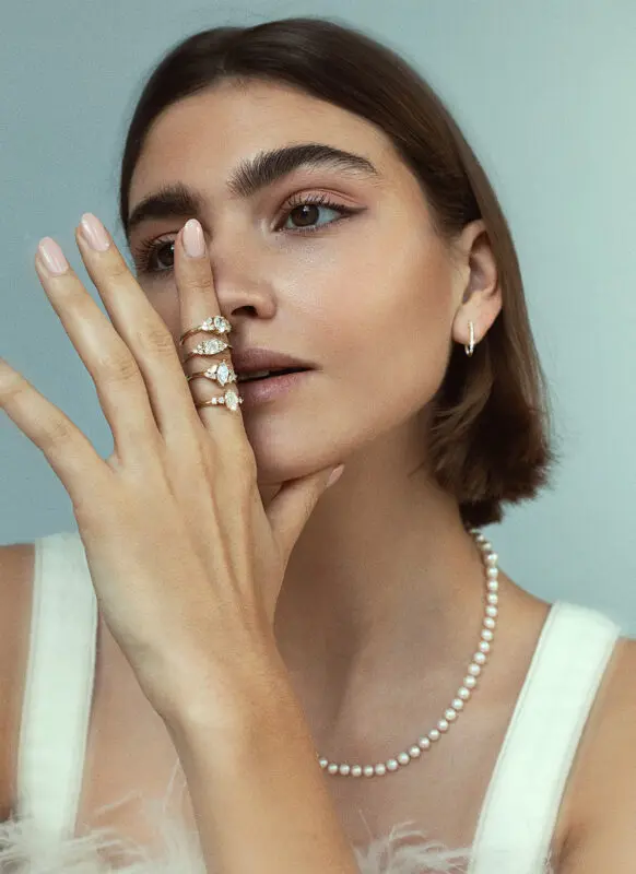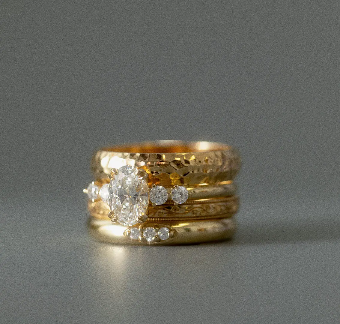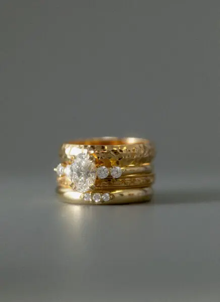 Nieuw dit seizoen is dat Studio Kroewe een paar extra mooie bruidsfavorieten heeft toegevoegd: zachte satin finishes, subtiele diamantdetails en vormen die supermooi combineren met bestaande ringen. Allemaal te bekijken in hun studio, waar je op afspraak langskomt voor een rustige, persoonlijke sessie.