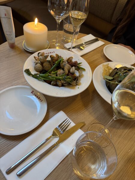 Het menu bestaat uit moderne, klassieke gerechten met een eigentijdse twist. Je kunt er kiezen voor kleine happen om te delen, of natuurlijk gewoon alles voor jezelf houden. Wij begonnen met schelpjes en artisjok, allebei heerlijk. Daarna gingen we voor de special van de dag: langzaam gegaarde sucade en een witvis. En de echt super dunne Franse frieten waren misschien wel the winner. Gewoon goed – en eigenlijk is dat soms precies wat je wilt. We hielden gelukkig nog wat ruimte over voor een zelfgemaakt bastongekoek dessert en een affogato. Alles klopt: van de smaken tot de presentatie, en de fijne sfeer maakt dat je hier sowieso vaker terug wilt komen.