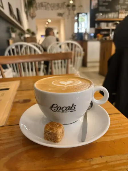 Bij Locals is alles, je raadt het al, lokaal. Van de bonen tot het brood. Het interieur is licht en knus, met houten stoelen en een gezellige hoekbank langs de grote raampartij bij binnenkomst. Overdag vult de zaak zich met zacht geroezemoes en het aroma van versgemalen koffie.