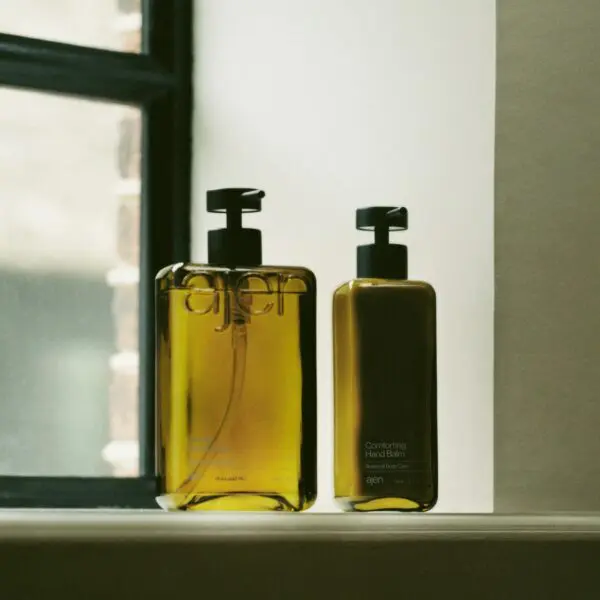 Ook Ajen werkt met navulverpakkingen. De botanische formules ruiken heerlijk en de stevige glazen fles vul je steeds weer bij. Wilderloof Hand Wash €35