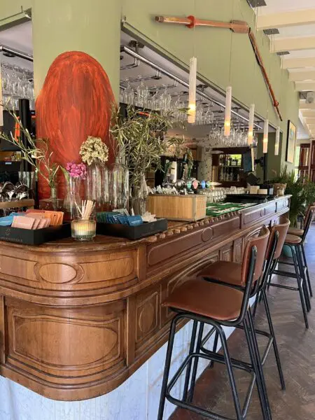 De menukaart is de afgelopen jaren verder verfijnd. Wat de pot schaft? Voor ieder wat wils, Grand Café stijl. De pizza’s uit de houtoven spelen nu een hoofdrol, het lunch-aanbod is rijker dan ooit en de kids-menukaart staat centraal. In de ochtend een simpele croissant maar ook een açaí bowl, het blijft Amsterdam. ’s Middags (zeer goed belegde) zuurdesembroden, tosti’s, (vega) burgers of een burrata salade. Voor de kids? Poffertjes.