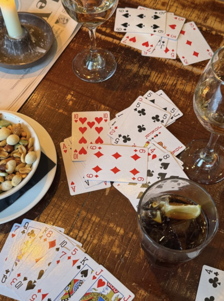 Zoals we al zeiden zit je hier in de zomer sowieso goed, maar ook in de winter kom je hier niks te kort. Het interieur binnen is meer dan gezellig. Een checkerboard vloer (vinden wij enig) en een dikke discobal aan het plafond. De enorm grote bar midden in het restaurant als eyecatcher maakt dit dan ook af. Openhaardje erbij, helemaal gezellig.