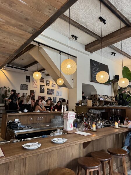 1. de locatie (zijstraat van de Utrechtsestraat, en dat is positief). 2. de inrichting (funky-cool en toch ook heel praktisch. Dat wil je ook).