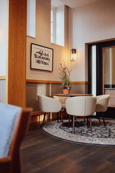 De kamers variëren van ruime hotelkamers met vide en dubbele douche tot luxe badkamers en een bruidssuite. Voor de inrichting tekende designbureau King Kongs. Lichte kleurtonen, zachte verlichting, patronen en lokale kunst, een beetje Art Deco meets moderne city chic. Hoge plafonds en grote ramen maken het geheel compleet.