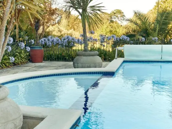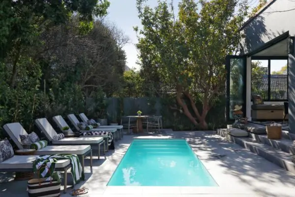 Een accommodatie in Stellenbosch waar we graag nog eens terugkomen: San Gabriel Homestead. En nog eens. En nog eens. Afijn, eigenlijk is het binnen deze lijst gewoon onze favoriet. Vooral met de kinderen, want wat is het hier nogal kindvriendelijk, zonder dat het er te dik bovenop ligt, precies zoals we het graag zien. De eeuwenoude boerderij is gigantisch: je reserveert het klassieke hoofdhuis, het Manor House, waar maar liefst vier slaapkamers en evenveel badkamers zijn, net als een geweldige keuken (met zo’n klassiek boeren keukeneiland en overal hangende pannen), een enorme woonkamer (en aparte study) én een eigen zwembad, jaccuzi en braai waarin je een tent kunt opzetten. Het ontbijt is een hoogtepunt: de eigenaar staat om 5 uur op om brood te bakken en alle het brood, pasteries en vers fruit (zoveel fruit) komt op een gezamenlijke tafel waar alle gasten aanschuiven.