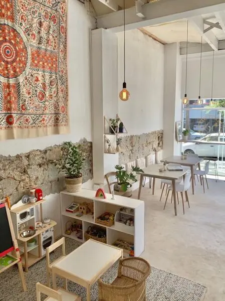 Nog zo’n fijne nieuwe voor met het kleine spul Imagine, een mini-dorp ontworpen voor kinderen en een stuk ruimer opgezet dan die hierboven. Een mini-marktkraam, een café, een politiebureau, een bouwplaats en een dierenkliniek: alles op kinderformaat. Hier kunnen kiddo’s eindeloos spelen, leren, en jij chillen. Het gaat om verbeelding, samenwerken en ontdekken en de ruimte is bedacht samen met pedagogen.Voor de allerkleinsten (tot 2 jaar) is er bovendien een aparte baby- en dreumeshoek met zachte, veilige sensory-materialen.