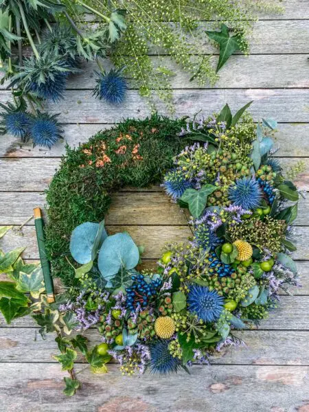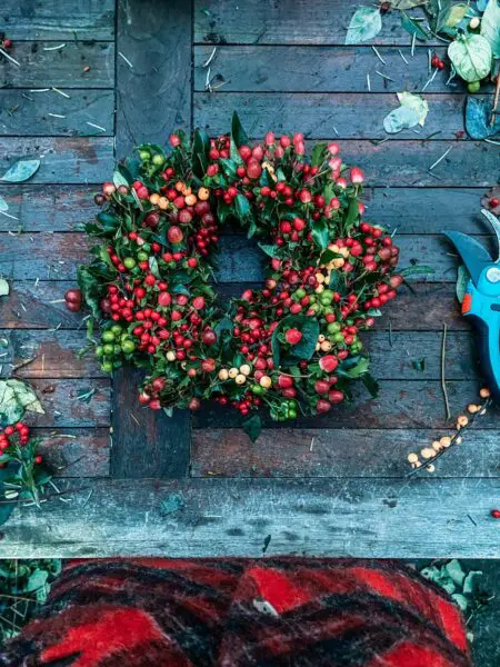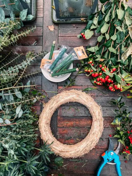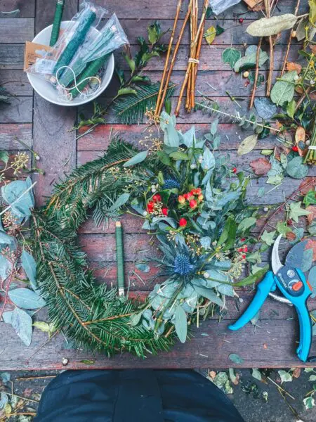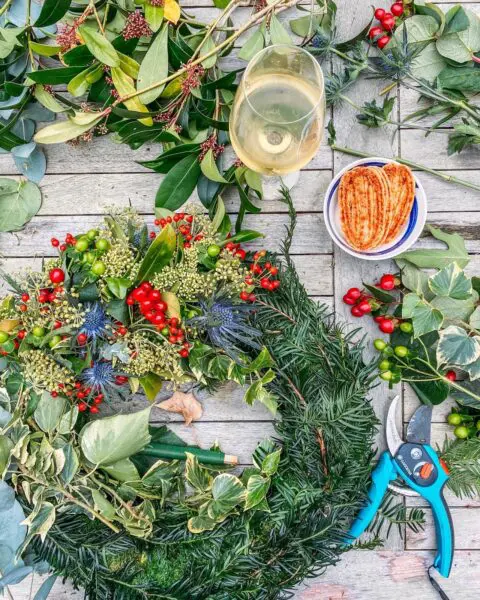- Vergeet geen glas wijn of koffie (afhankelijk van de tijd) en iets lekkers klaar te zetten – zo wordt het kransmaken pas écht gezellig