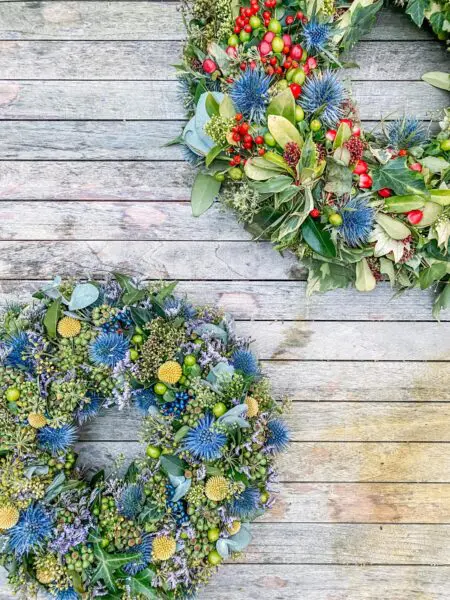 Vers groen: kransen met buxus, klimop of den gaan 3–6 weken mee.