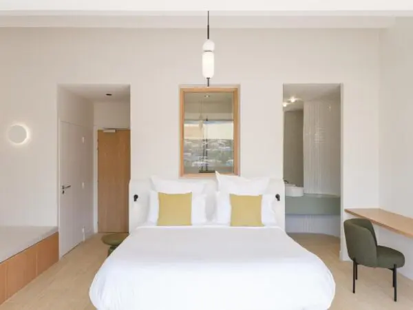 Het hotel zit op dat perfecte punt tussen ‘gezellig in het dorp’ en ‘de rust opzoeken’. Twee minuten lopen naar het marktplein en de stranden, ver genoeg weg om ’s avonds alleen het kabbelen van de Middellandse Zee te horen. De infinity pool, warm genoeg om er in januari nog in te zwemmen, kijkt uit over een panorama dat belachelijk mooi is: de bergkam van de Albères, de rode daken van Collioure, het koninklijke kasteel aan zee.