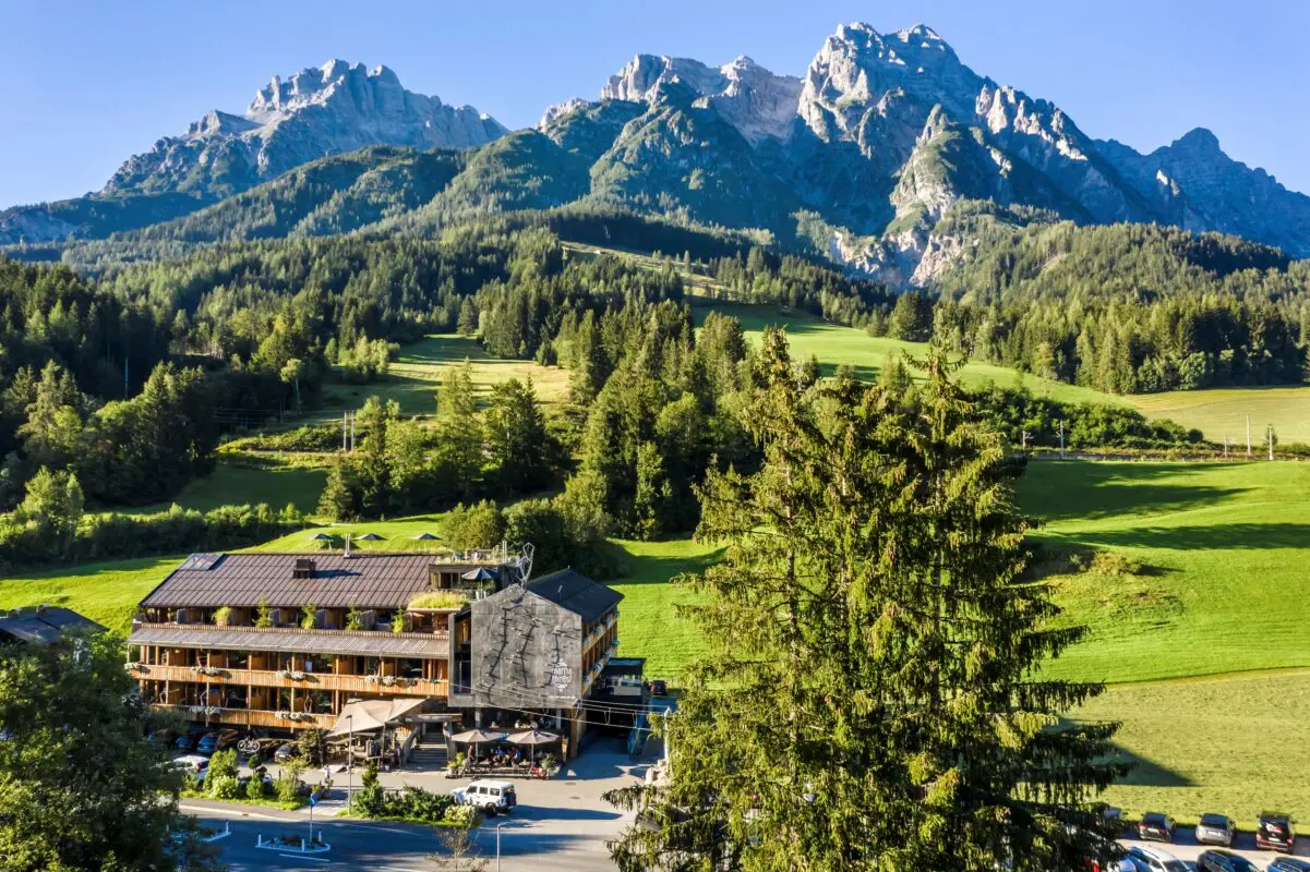 Waar je moet wezen om dit hotel te vinden? Leogang dus, een prachtig berglandschap dat het hele jaar avontuur en rust combineert. Je fietst er over alpine trails, wandelt langs panorama’s en in de winter daal je de pistes af en ieder moment kom je gewoon tot rust komt aan een bergmeer.