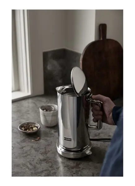 Last but not least de simplistische waterkoker van Stelton is ontworpen door Erik Magnussen. De waterkoker gebruik je met snoer om je water te koken en zonder snoer om je water warm te houden. €84,95
