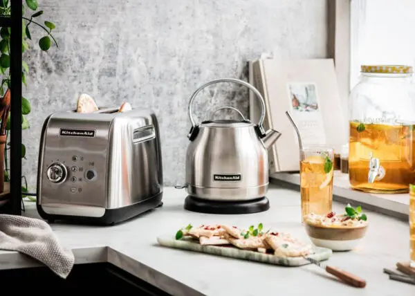 De retro waterkoker van KitchenAid is ook een hit. Deze waterkoker in de vorm van een fluitketel is verkrijgbaar in verschillende kleuren: rvs, wit, crème en rood. Ook zijn er net iets andere modellen – ook weer in meer kleuren – als je meer van iets strakker of moderner houdt. €99