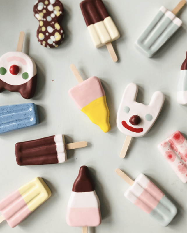 Niet heel gek dat het snoepige werk van Odette Muijsers snel uitverkocht is. Kleurige kunst, zachte prijsjes en originele producten doen het namelijk mega goed en zo ook hier. Een chocopoplolly van klei aan je muur in de mooiste kleuren geverfd? Wie wil dat nou niet. Lollig en uniek!