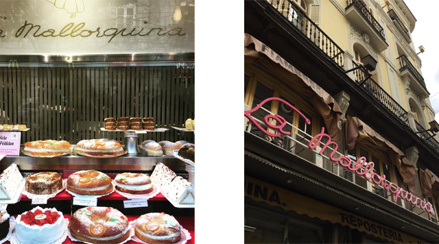 Zoete broodjes bakken, dat kunnen ze wel in Spanje. En dat doen ze het beste bij Pastelería La Mallorquina, sinds 1894, pontificaal op het beroemde plein Puerta del Sol. La Mallorquina is een typisch Spaanse en eigenlijk vrij onooglijke tent met marmeren vloer en houten bar met bruin-roze stenen bovenblad en messing details om staand een koffietje aan te drinken – kruimelen met je begeleidende sweet stuff verplicht – en meterslange vitrines vol zoetwaren. Sjonge, er liggen puddingbroodjes met gele room, pepito de crema, die bij aanblik alleen al een death by sugar veroorzaken, dubbeldekkertjes koekdeeg met daartussen tien centimeter (neger)zoenenschuim geplakt, mollige rollen dulce de leche en romige flan Chino met knapperig rood suikerlaagje. Je vreet je vingers erbij op. Het is dan ook altijd dringen geblazen hier, tussen temperamentvolle (en beroemde) Spanjaarden die je vol vuur terechtwijzen als je voor je beurt gaat.