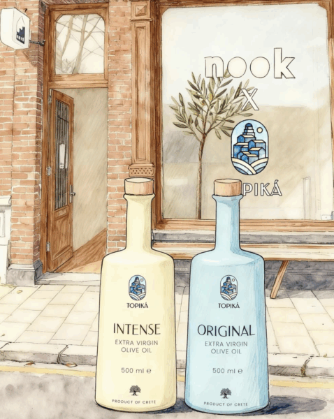 Van 14 tot en met 16 november strijkt TOPIKÁ neer bij Nook Amsterdam, en geloof ons: dit wil je niet missen. Drie dagen lang draait alles om Griekse olijfolie van proeven, tot ruiken, schilderen (!) en zelfs shaken. Terwijl kunstenaars live de mooiste olijfolieflessen beschilderen, staan chefs uit Amsterdam klaar met bites waarin die vloeibare goudkleurige smaakmaker de hoofdrol speelt. In de middag nemen de bartenders van MR PORTER het stokje over met cocktails met een olijfolie-twist.