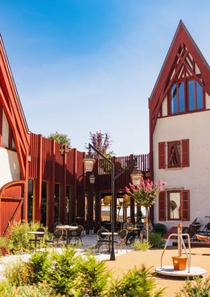 In het hart van Vosne-Romanée huist La Cuverie de Vosne. De stijl van La Cuverie de Vosne doet denken aan een moderne farmhouse. Wat het team heeft neergezet? Een charmante mix van alles wat je nodig hebt: een biologische en lokale kruidenierswinkel, een koffietent, een wijnbar en vier kamers om te overnachten. Ook aan het kleine grut is gedacht: zij kunnen zich uitleven in de speeltuin.