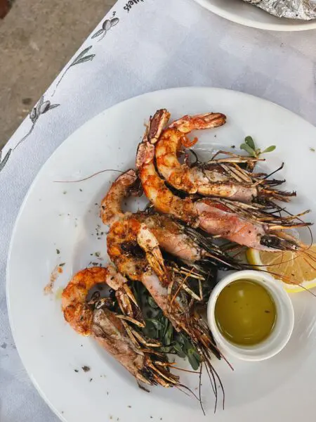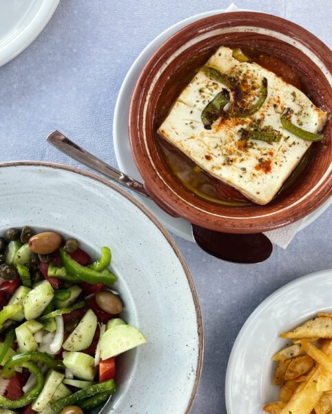 Ook ongeveer op een kwartier rijden van de hoofdstad, aan de rustige kant van Chrisopigi, ligt Apokofto Beach – een klein paradijs met zacht zand en glashelder water. Eerst even langs Way Cup Roaster voor takeaway koffie en baklava – want eerlijk, het terras nodigt niet uit om te blijven hangen. De eigenares roostert haar eigen bonen en die huisgemaakte baklava? Absoluut meenemen. Daarna richting het strand: zwemmen, dutten, niks moeten. Loop zeker ook even naar het Chrisopigi klooster, gezellig authentiek. En als de honger toeslaat? Dan is de gegrilde feta bij Chrisopigi Tavern een aanrader.