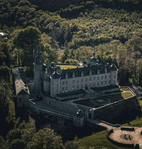 Een knetter groot kasteel in het hart van de bossen van Saint-Hubert. Château de Mirwart ligt bovenop een rots in de vallei van de rivier ‘L’homme, een ideale plek voor een grote bruiloft.