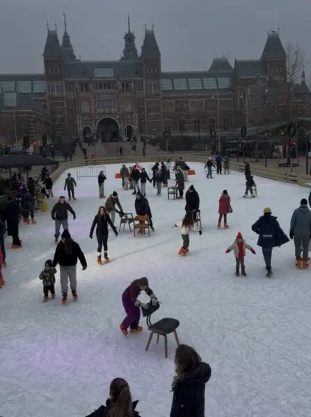 Jaaaa, nog één laatste keer schaatsen op Museumplein in Amsterdam. En hoe beter dan nostalgisch ondersteund te worden door een stoel, zoals elke Nederlander schaatsen heeft geleerd. Aankomende week tot 6 februari is de laatste kans dat je kan schaatsen op Museumplein tijdens de showroom van Loods5. Hierbij staat de nieuwe collectie van Loods5 stoelen op het ijs en mag je die gebruiken om te ondersteunen of even te zitten, hoe jij wil. Dus hup, schaatsen aan en nog één laatste keer!