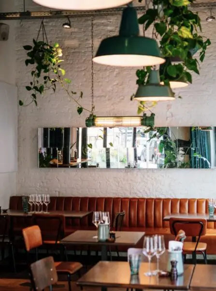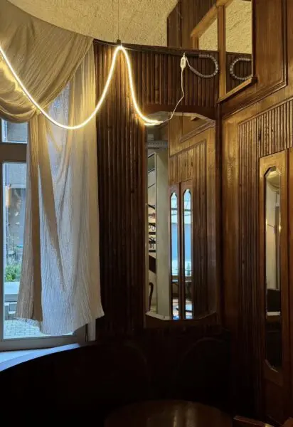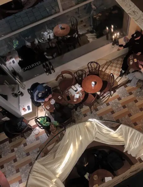 Spiridon in de Kronenburgstraat is echt geen doorsnee wijnbar. Nikolaj Kovdal – ja, die van Fiskebar en Fiskeskur (zie artikel ‘Antwerpen? Op naar het nieuwe restaurant Fiskeskur’) zette hier een plek neer waar natuurwijn en karakter helemaal voorop staan. Van een glas huiswijn tot een zeldzame fles uit de kelder, alles open per glas, gewoon omdat het kan. De keuken serveert avontuurlijke gerechten met fermentatie in de hoofdrol. Ook voor de interieurliefhebbers is dit een plek om te blijven hangen. Leemwanden, oude spiegels en een originele houten slagersfrigo die nu als wijnkelder gebruikt wordt, zorgen voor extra charme.