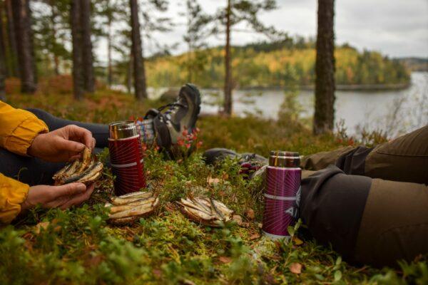 Zonder goed eten is een reis – wat ons betreft – toch minder geslaagd. Wat een geluk dat Finland ook nog eens een uitstekende keuken heeft. Think vers eten uit de natuur en de meren met een vleugje Zweedse en Russische keuken. Met op het menu houtvuur gerookte zalm, regenboogforel, vlees van eland – moet je durven – en verse aardappelen, paddestoelen en de zoetste bessen. Denk daar een droomsetting met een mooi gedekte (picknick)tafel ergens aan een meer bij en het plaatje is compleet.